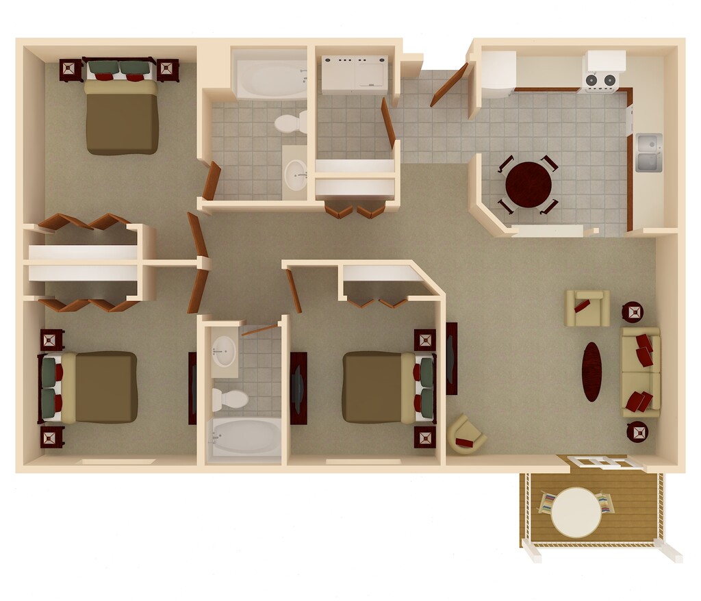 Apartment Model: 3 Bedroom 2 Bathroom$1,2153 Bedroom, 2 Bath, 1176 sq ftAvailable Now![]()