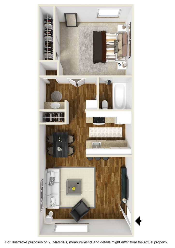 Apartment Model: PiquinFrom $995Studio, 1 Bath, 405 sq ftAvailable NowFloor plans are artist's rendering. All dimensions are approximate. Actual product and specifications may vary in dimension or detail. Not all features are available in every rental home. Prices and availability are subject to change. Base rent is based on monthly frequency. Additional fees may apply, such as but not limited to package delivery, trash, water, amenities, etc. Deposits vary. Please see a representative for details.