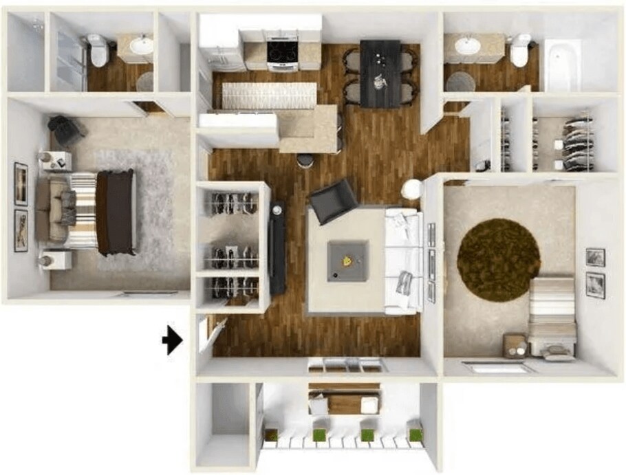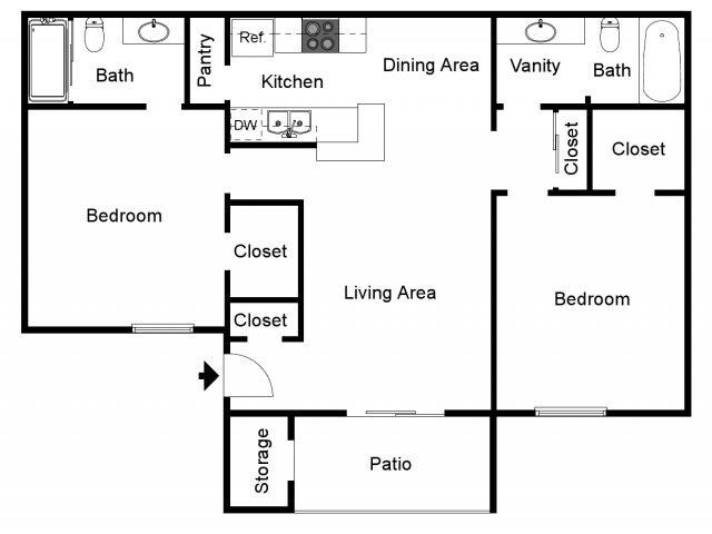 Pasilla - Floorplan 2 Floor plans are artist's rendering. All dimensions are approximate. Actual product and specifications may vary in dimension or detail. Not all features are available in every rental home. Prices and availability are subject to change. Base rent is based on monthly frequency. Additional fees may apply, such as but not limited to package delivery, trash, water, amenities, etc. Deposits vary. Please see a representative for details.
