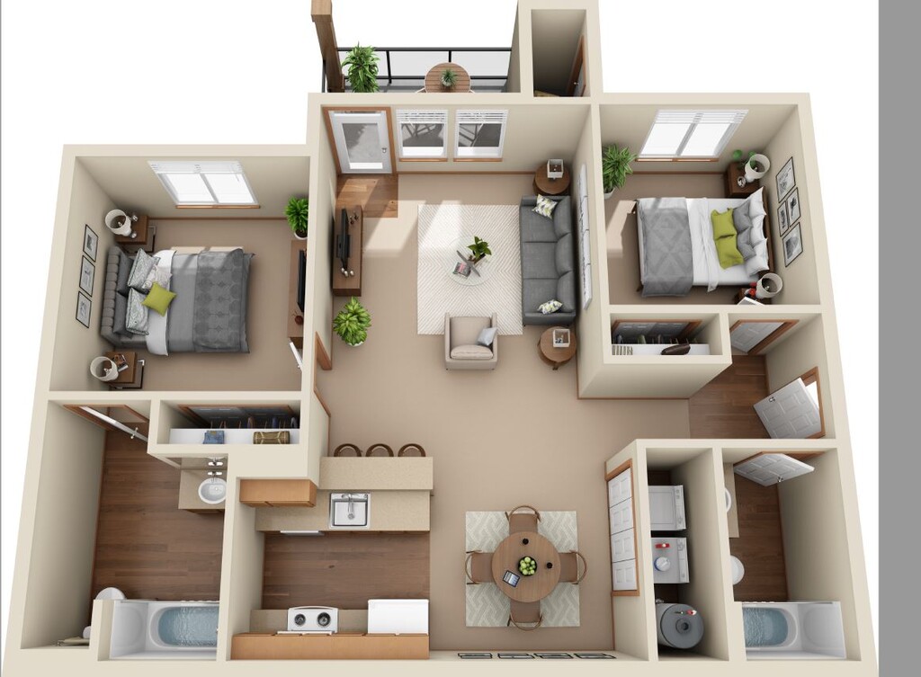 2 Beds, 2 Baths, 1010 sq ftAvailable NowModel Gallery