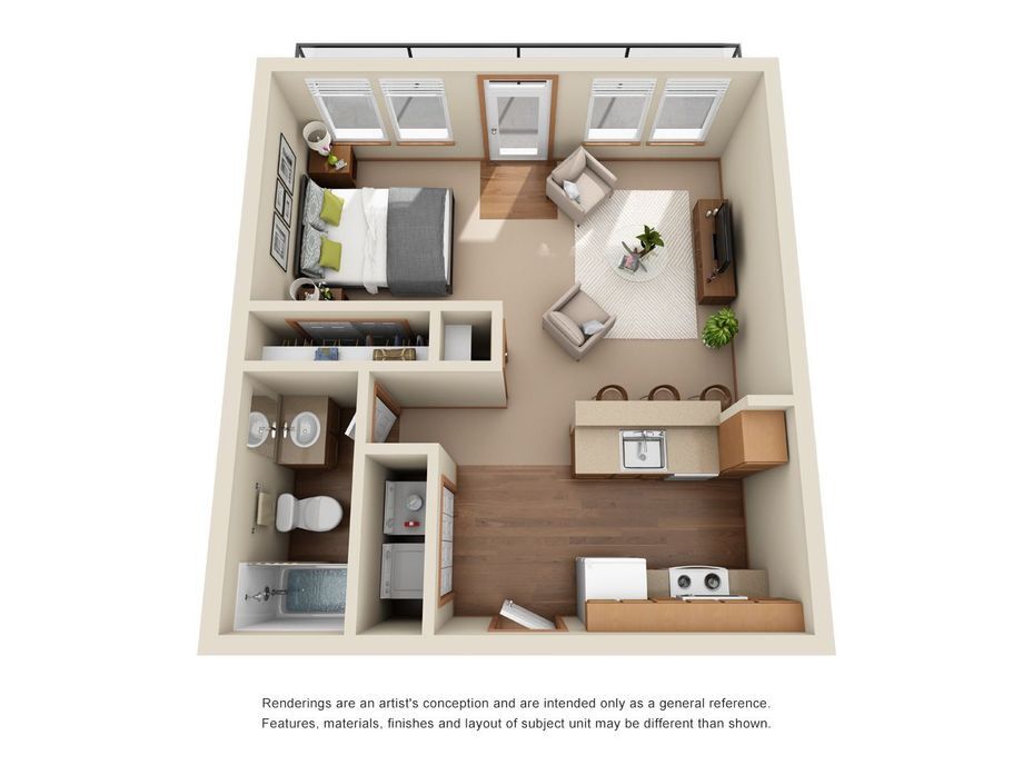 Studio, 1 Bath, 600 sq ftAvailable NowModel Gallery
