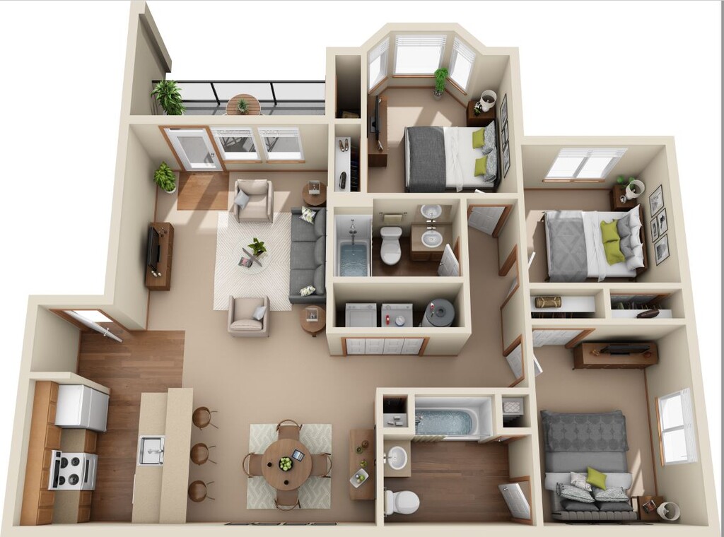 2 Bedroom - Floorplan 3 3 Bedrooms