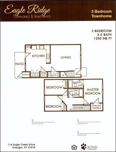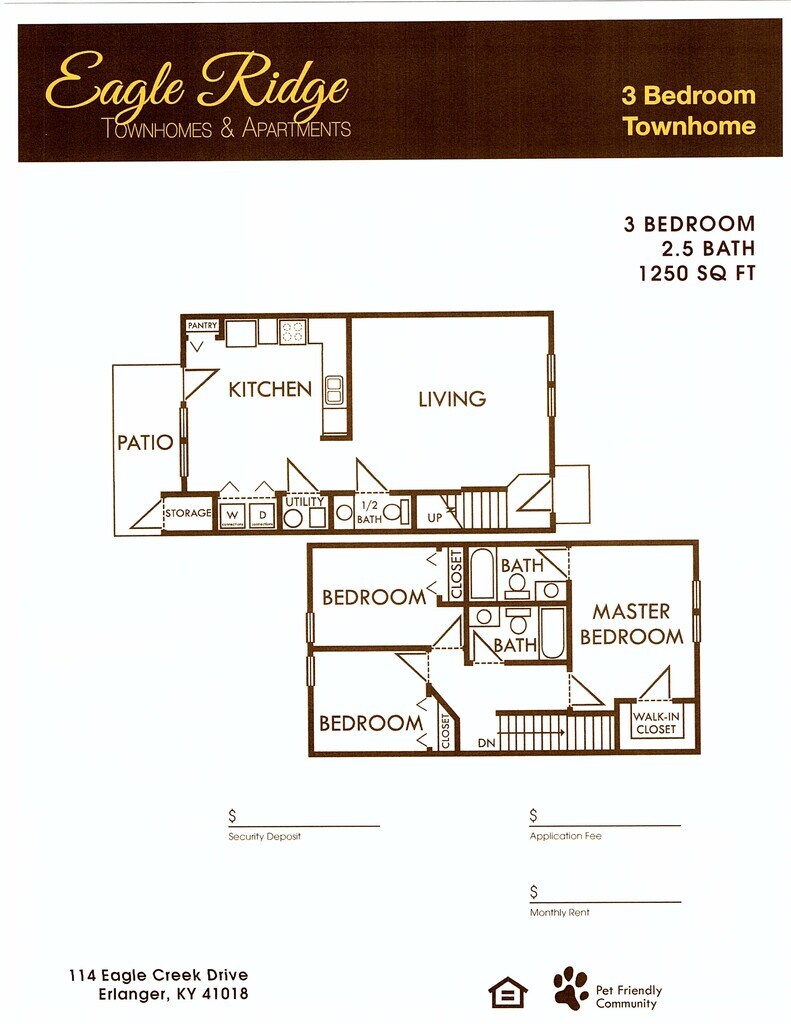 3b/2.5 b -TH Eagle Ridge Apartments - Floorplan 2 Apartment Unit: 155Apartment Model: 3b/2.5 b -TH Eagle Ridge Apartments$1,6003 Bedroom, 2.5 Bath, 1250 sq ftAvailable Now
