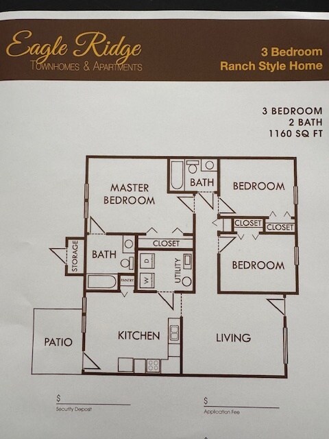 Apartment Model: 3bed RanchEagle Ridge ApartmentsFrom $1,6003 Bedroom, 2 Bath, 1160 sq ftAvailable Now![]()