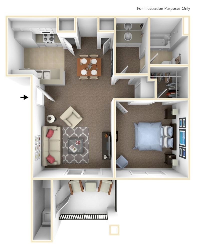 Apartment Model: A$9881 Bedroom, 1 Bath, 672 sq ftUnavailable![]()