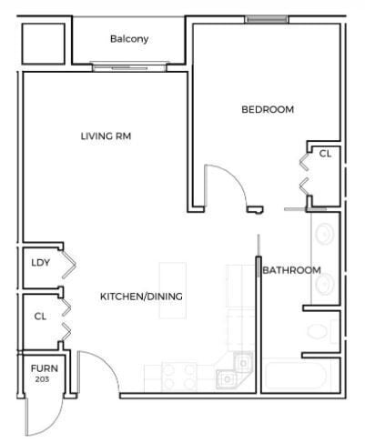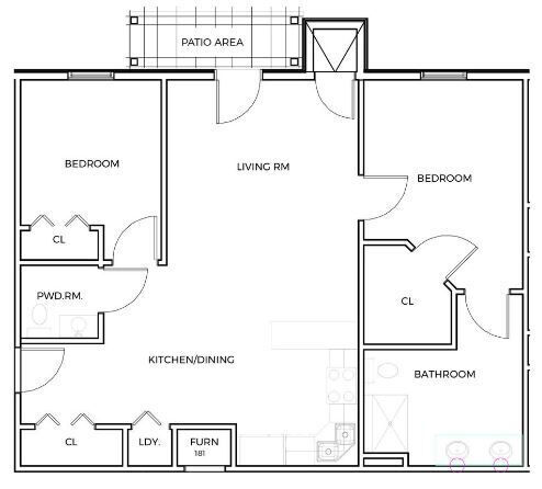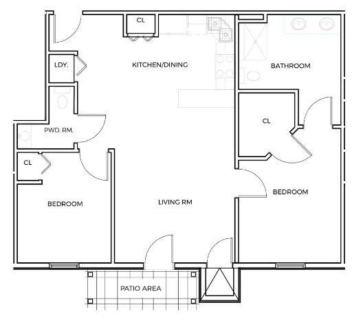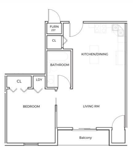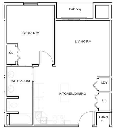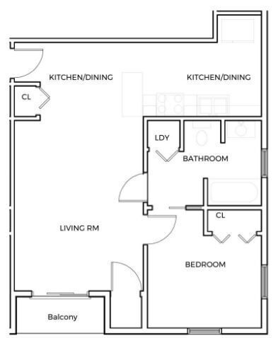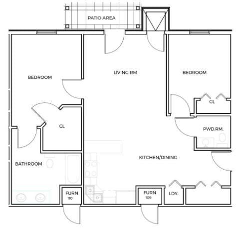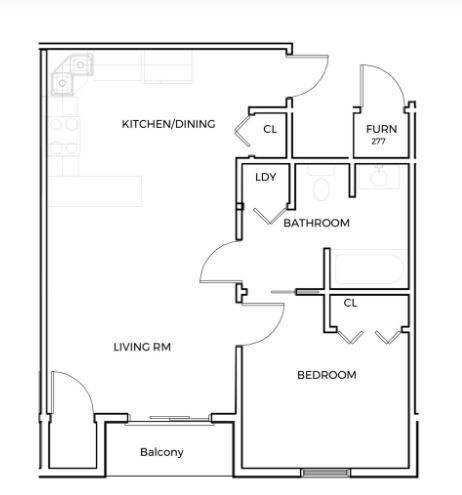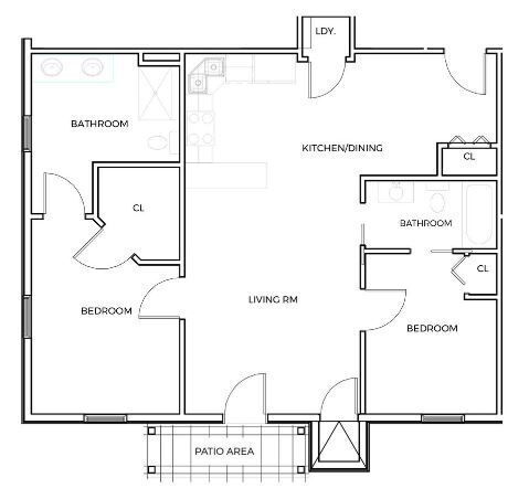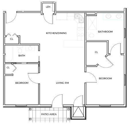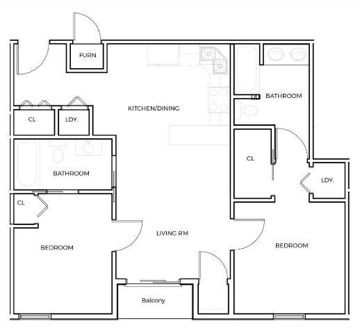 1BED / 1BA - Floorplan 6 2 Bedrooms