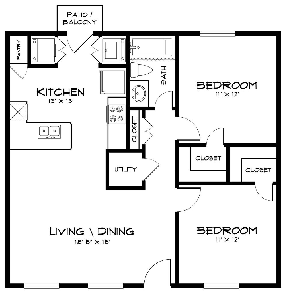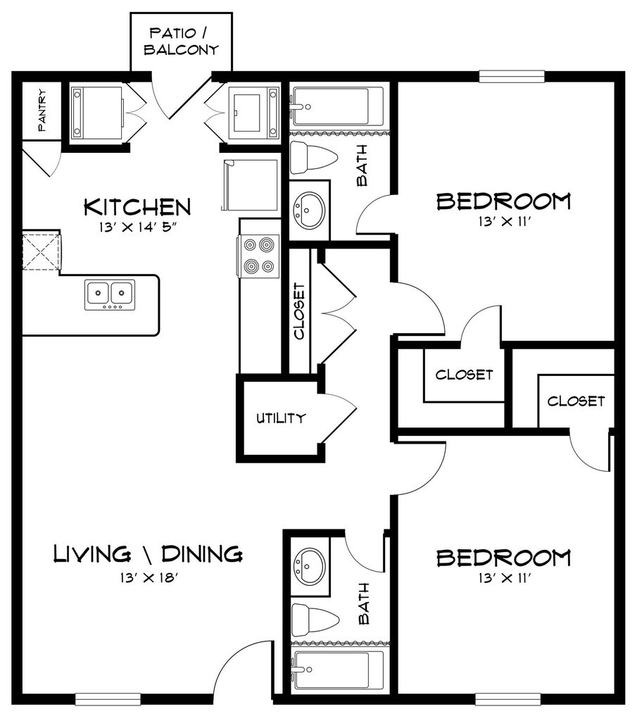 B2 - Floorplan 1 Apartment Unit: 14DApartment Model: B22 Bedroom, 2 Bath, 960 sq ftAvailable NowFloorplan B1