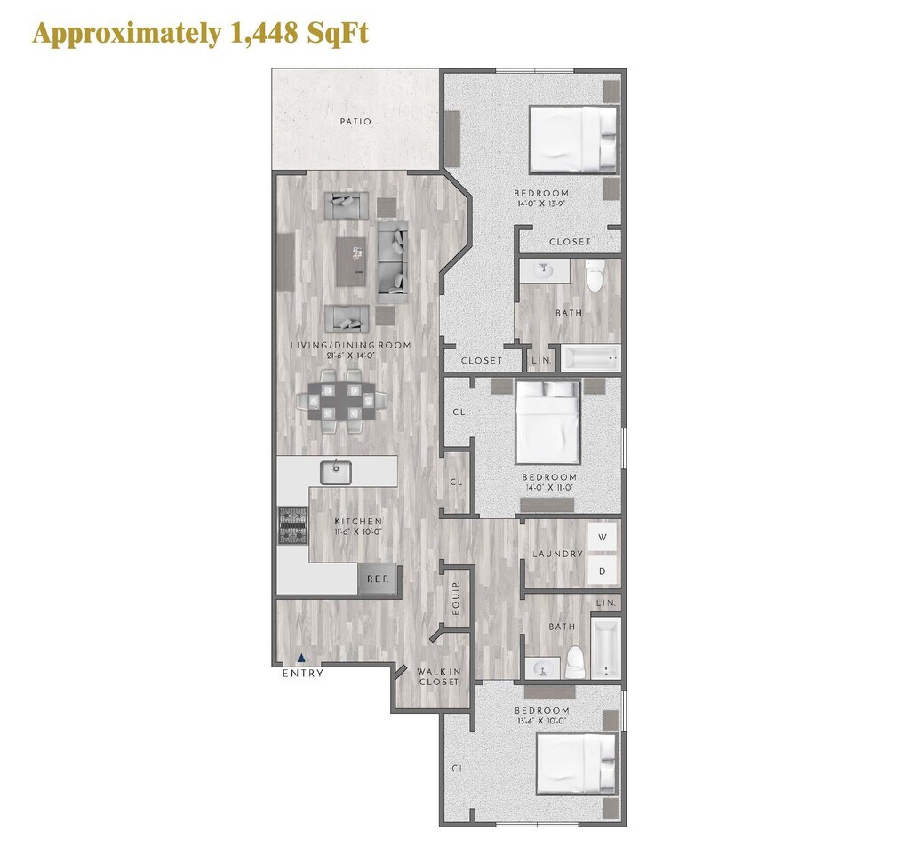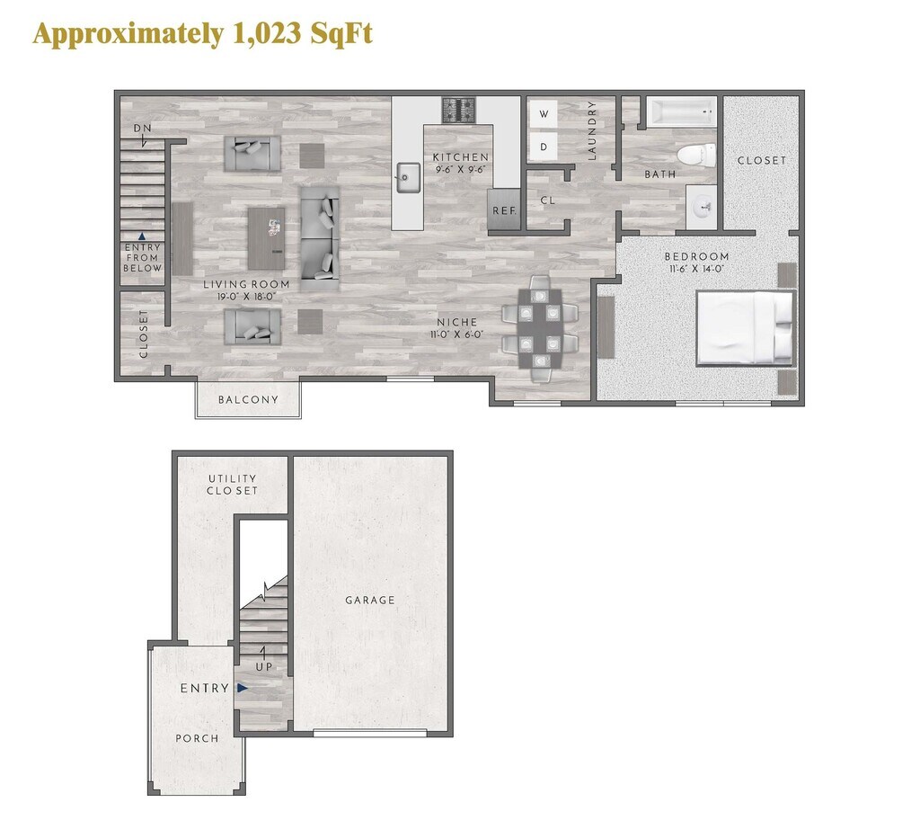 1 Bed, 1 Bath, 1023 sq ftModel Gallery