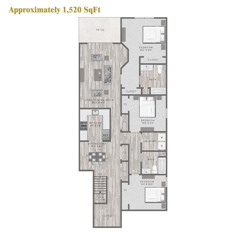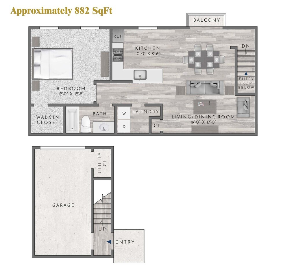 1 Bed, 1 Bath, 882 sq ftModel Gallery