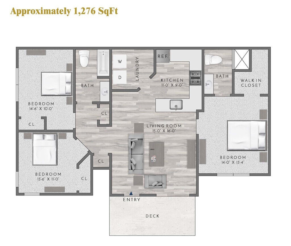 2 Beds, 2.5 Baths, 1370 sq ftAvailable NowLargest 2 BedroomThis is the largest 2 Bedroom at this PropertyModel Gallery