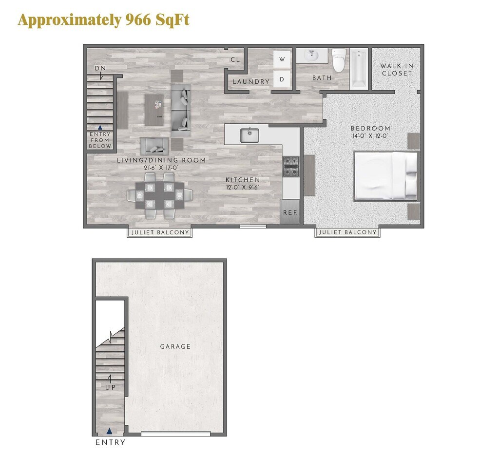 1 Bed, 1 Bath, 966 sq ftModel Gallery