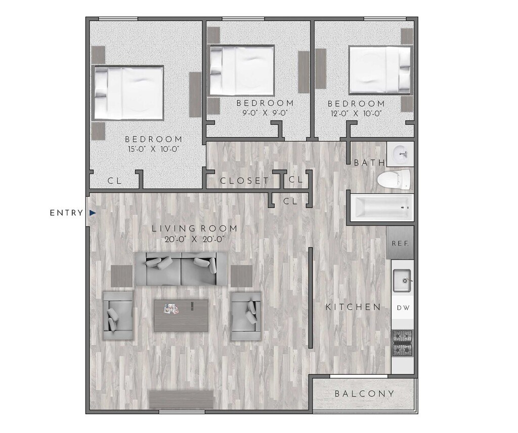 Apartment Model: C1From $3,8943 Bedroom, 1 Bath, 950 sq ftAvailable Now![]()