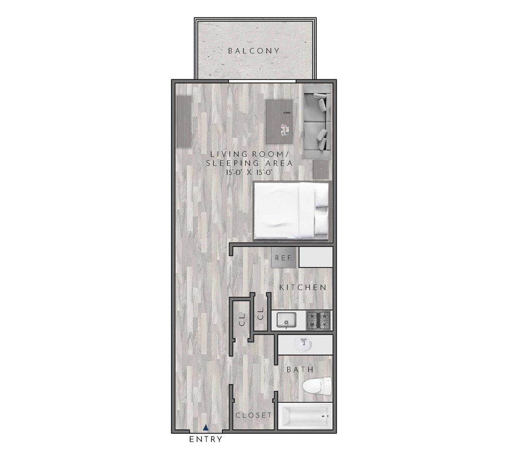Studio, 1 Bath, 500 sq ftModel Gallery