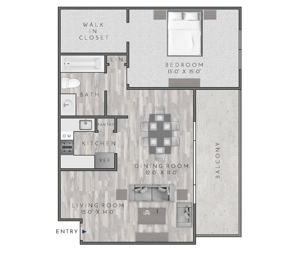 1 Bed, 1 Bath, 750 sq ftModel Gallery