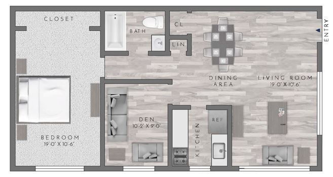 1 Bed, 1 Bath, 676 sq ftModel Gallery