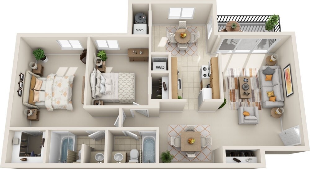 2 Beds, 2 Baths, 1000 sq ftAvailable NowModel Gallery