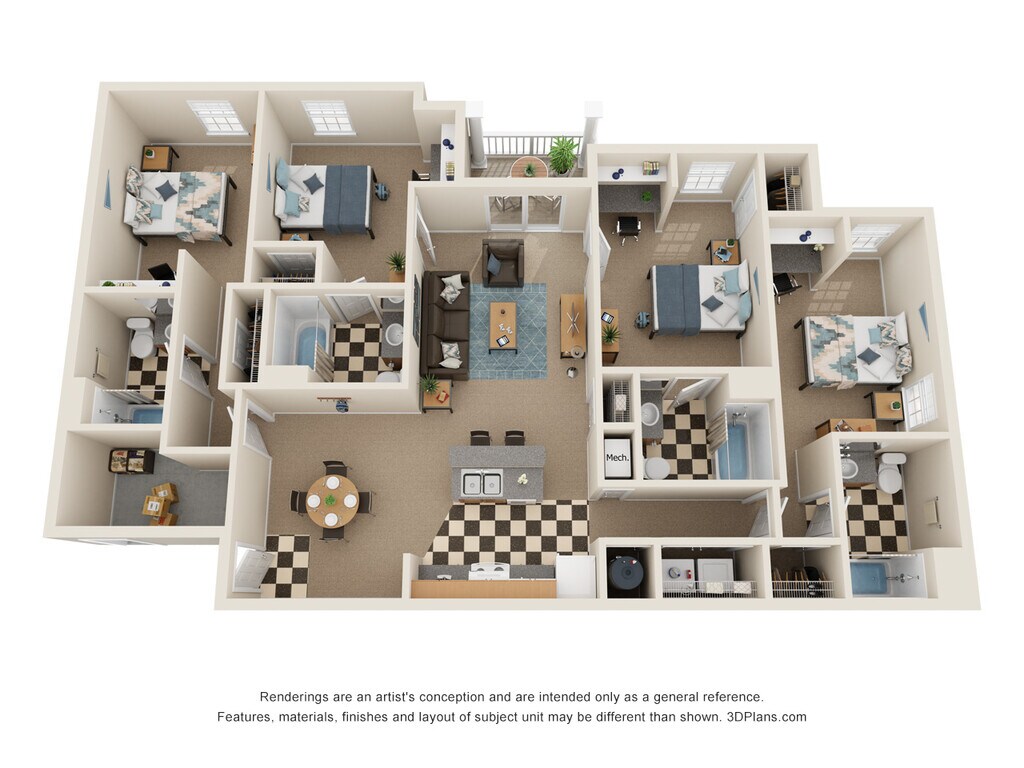 Apartment Model: 4x44 Bedroom, 4 Bath, 1450 sq ftUnavailable![]()
