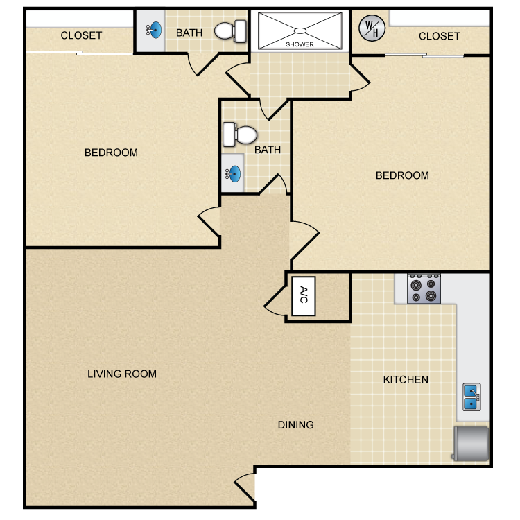 2 Beds, 1.5 Baths, 930 sq ftAvailable NowLargest 2 BedroomThis is the largest 2 Bedroom at this PropertyModel Gallery