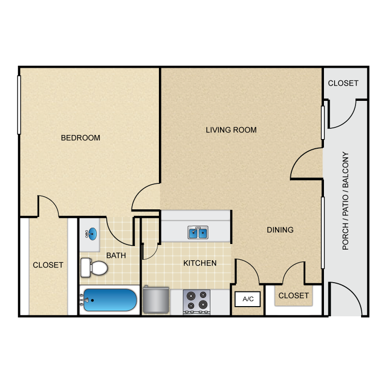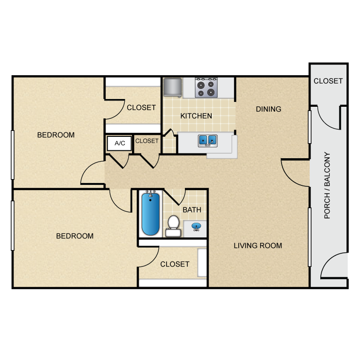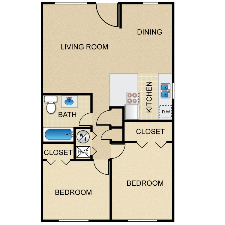 2 Beds, 1 Bath, 820 sq ftAvailable NowCheapest 2 BedroomThis is the cheapest 2 Bedroom at this PropertyModel Gallery