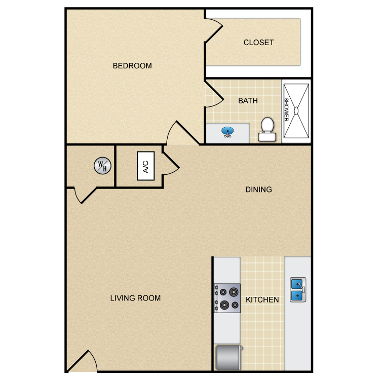 Apartment Model: 1 Bedroom 1 Bath$7041 Bedroom, 1 Bath, 625 sq ftUnavailableFloorplansPhotos![]()