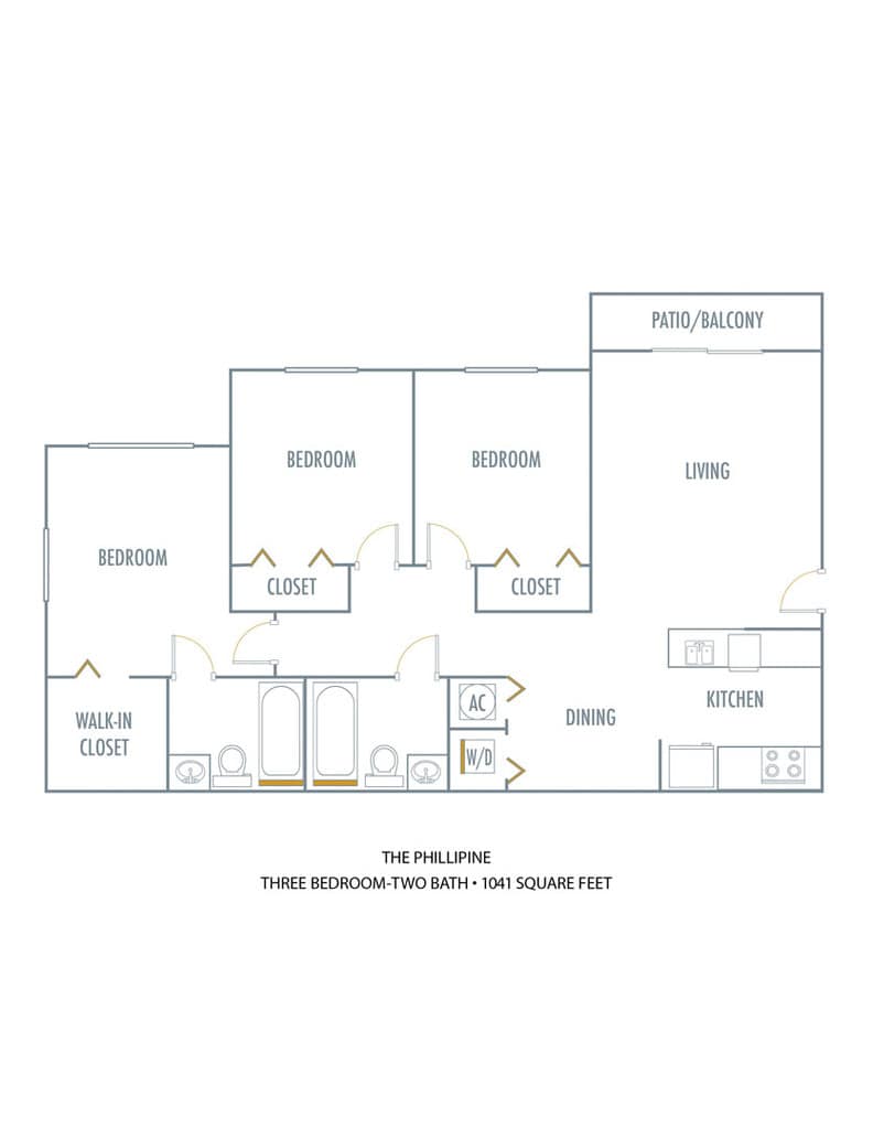 Apartment Model: Phillipine3 Bedroom, 2 Bath, 1041 sq ftUnavailable![]()