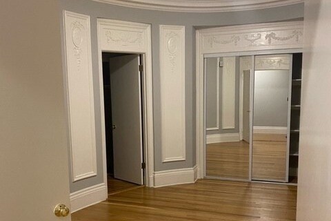 Cut and paste the link below for a virtual tour of this amazing historic apartment. https://my.matterport.com/show/?m=Nj1k2dCM554 In 1920 a contractor built two unique twin buildings side by side for his two daughters. • The units were exquisitely finished with the finest materials and attention to detail. • This exceptionally large almost 900 square foot apartment features a cook’s kitchen including a gas stove and all new stainless-steel appliances. • You will be enchanted by the details of the moldings in the lobby. • The oval bedroom also features the beautiful moldings. • A tranquil rear garden is available for use by the residents. • Cat is welcome in the beautifully maintained property. • On-site Manager is well liked by all residents – he also takes care of maintenance requests.