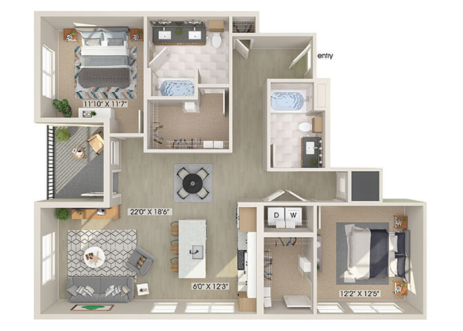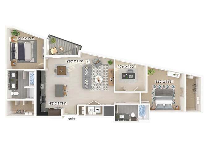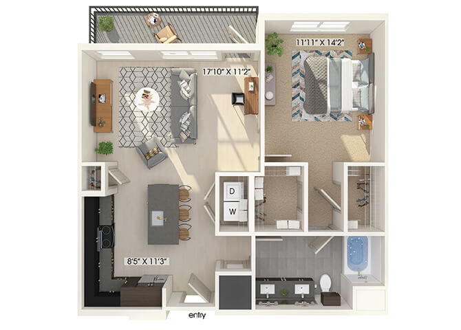 1 Bed, 1 Bath, 872-896 sq ftAvailable January 5, 2026Model Gallery
