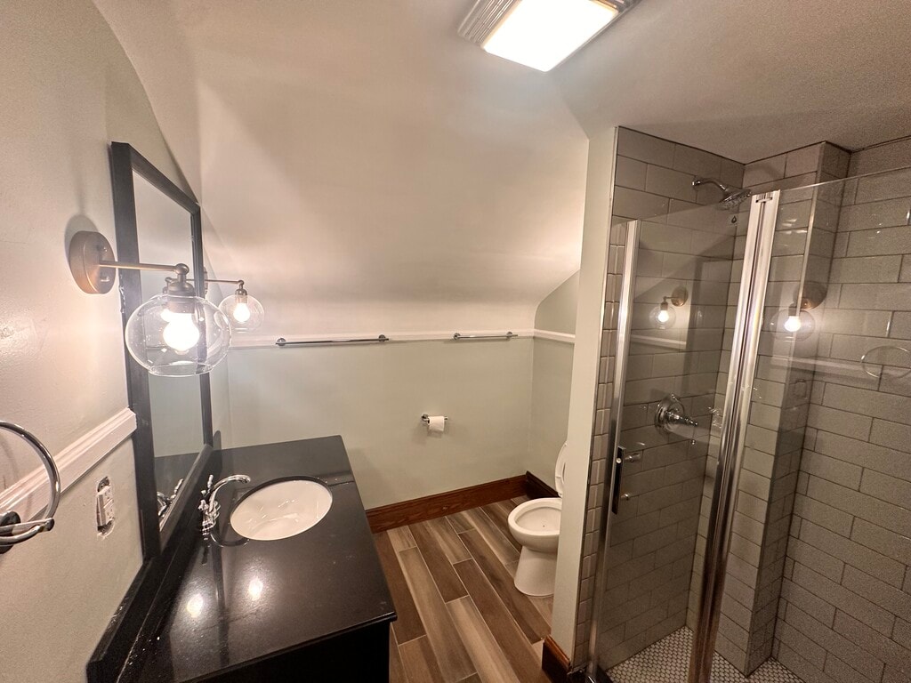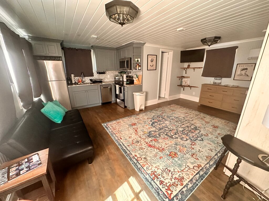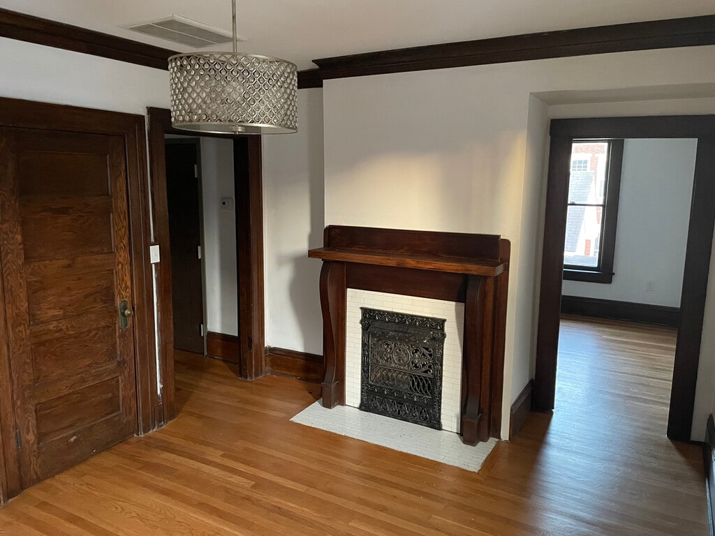 Our third floor loft/studio apartment is a unique and efficient use of the space that was previously an unused attic. Features original refinished hardwood floors/trim circa 1915, new tile in bathroom/shower, new drywall/lighting/paint, exposed brick, SS appliances, granite CT's, full fridge, washer/dryer, microwave, range/oven, range hood, W/D in unit, living area with smart 42in FS TV, pull out futon, bar table for eating/workspace, off st. parking.