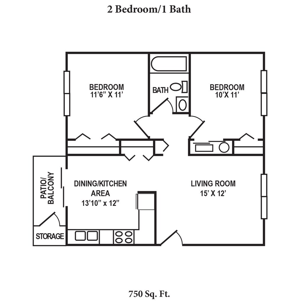 2 Bedroom, 1 Bath - Floorplan 2 Apartment Unit: 761KApartment Model: 2 Bedroom, 1 Bath2 Bedroom, 1 Bath, 750 sq ftAvailable January 5, 2026