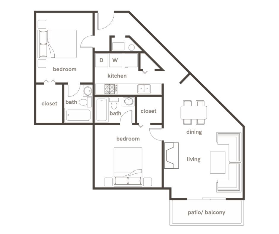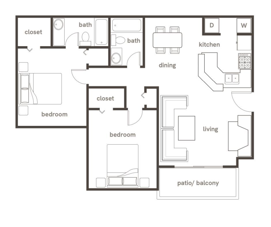 1 Bed, 1 Bath, 752 sq ftAvailable NowModel Gallery