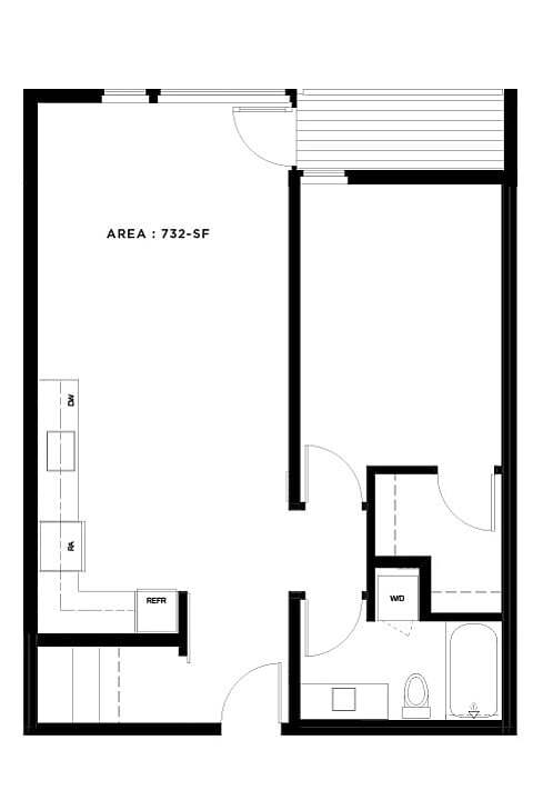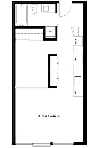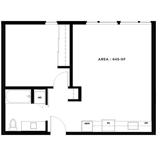 Studio, 1 Bath - Apt A - Floorplan 1 Apartment Unit: 618Apartment Model: Studio, 1 Bath - Apt A$1,750Studio, 1 Bath, 403 sq ftAvailable NowStudio, 1 Bath - Apt A (Income Qualified)