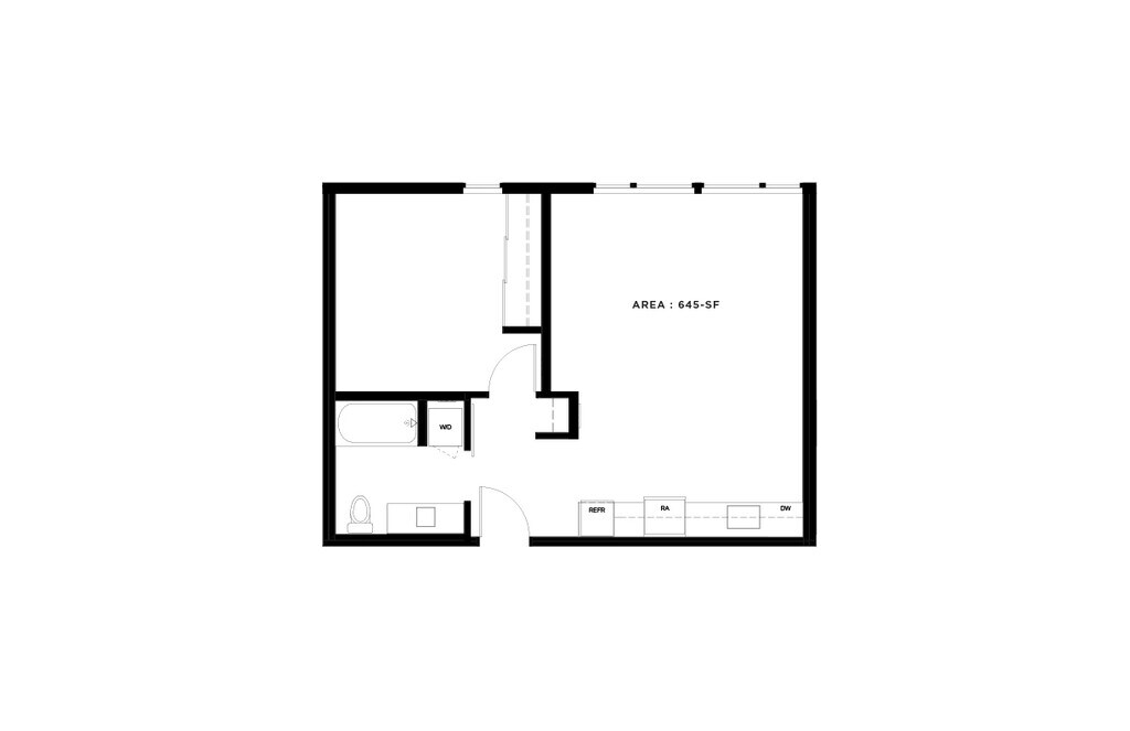 Studio, 1 Bath - Apt B - Floorplan 1 Apartment Unit: 624Apartment Model: Studio, 1 Bath - Apt B$1,853Studio, 1 Bath, 452 sq ftAvailable Now1 Bedroom