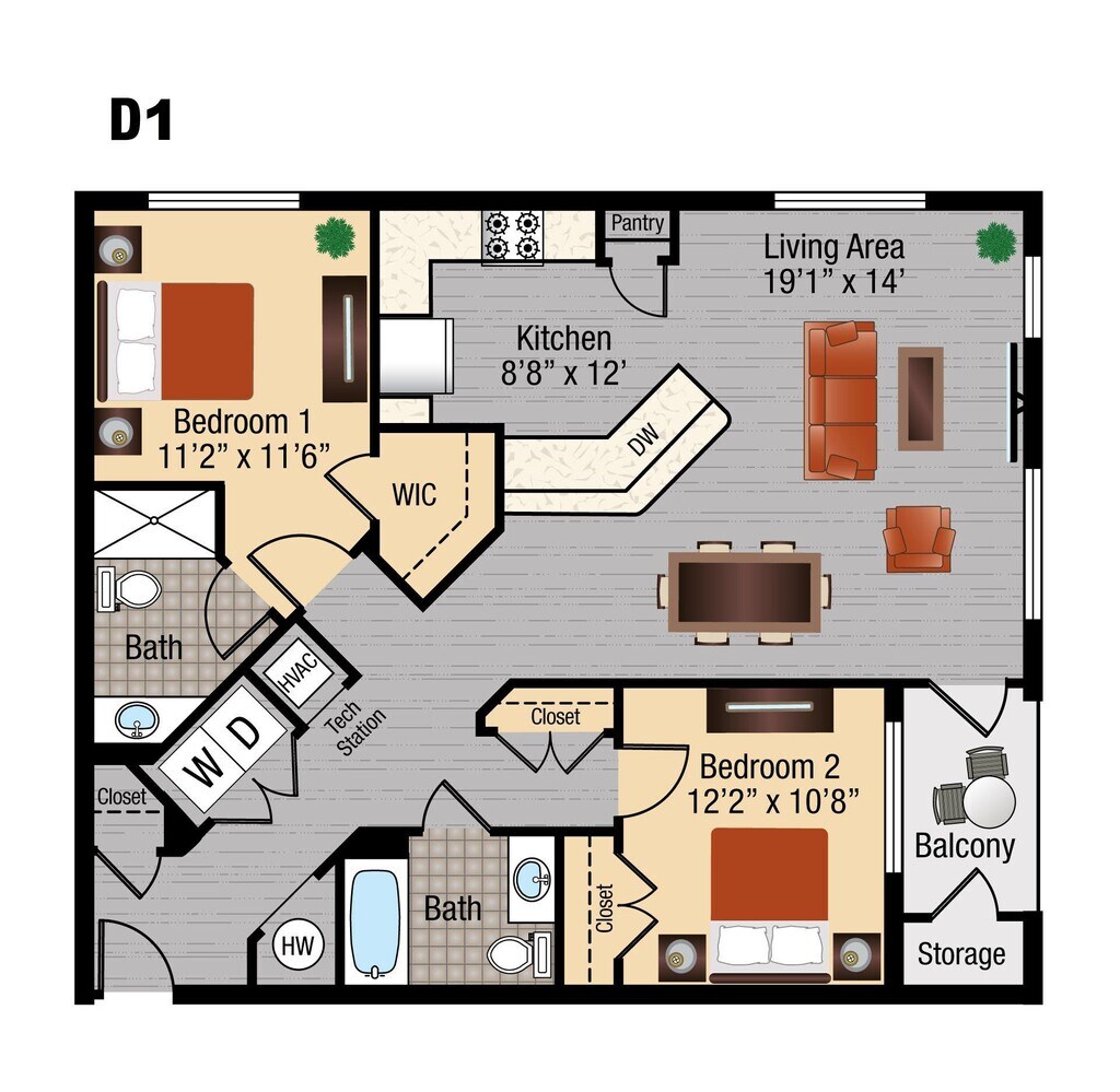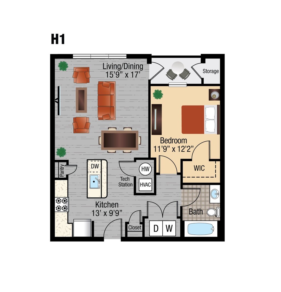 Apartment Model: H1From $2,0171 Bedroom, 1 Bath, 767 sq ftAvailable Now![]()