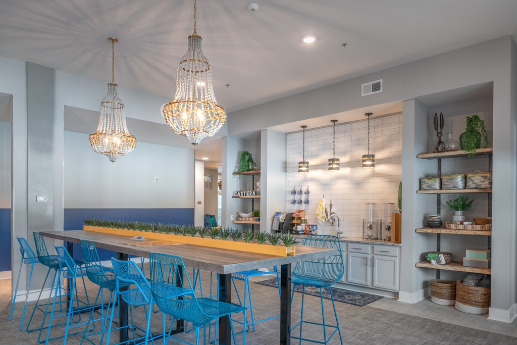 Perfectly situated on East 10th Street, just minutes from East Carolina University, The Eastern on 10th is the off-campus housing destination for you. We offer fully-furnished 1, 2, and 3 bedroom apartments, all with private bedrooms and private bathrooms. Our garden-style apartments feature modern, high-end finishes, including granite countertops, faux stainless appliances, plank wood flooring, and pendant lighting. We also offer spacious walk-in closets, pool views, patios and balconies in select apartments. High-speed internet, water, trash and sewer service are all included in your regular monthly rental installment. When you're not in class or spending time in your new home, you'll love hanging with your friends at our resort-style pool with outdoor lounge spaces and a sun deck, staying active in our 24-hour fitness center with a heavy bag, cardio machines, and weights, or catching up on your coursework in the study lounge and cyber cafe. Take advantage of our 24-hour resident clubhouse with tons of lounge areas, private study rooms, self-serve coffee bar, and gaming area.