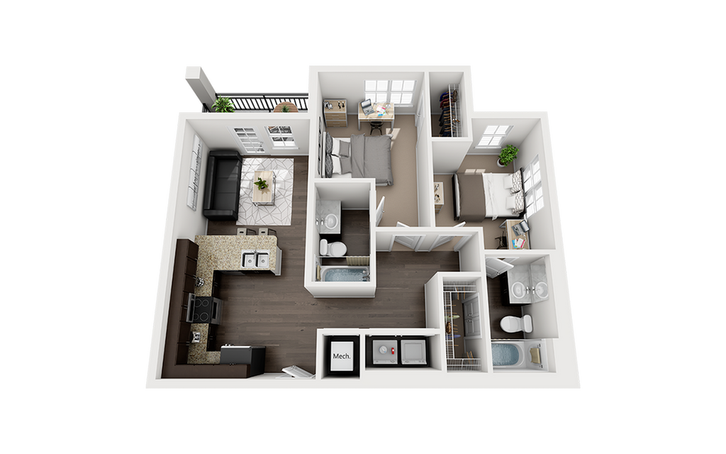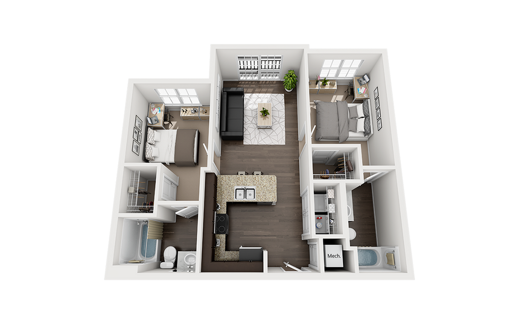 2 Beds, 2 Baths, 894 sq ftAvailable August 13, 2026Largest 2 BedroomThis is the largest 2 Bedroom at this PropertyModel Gallery