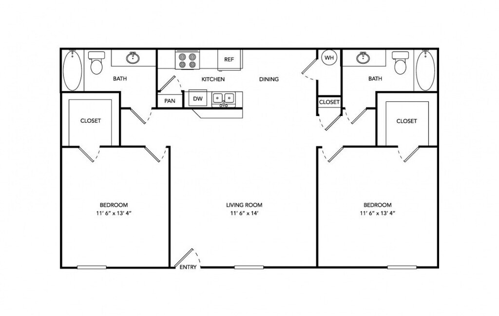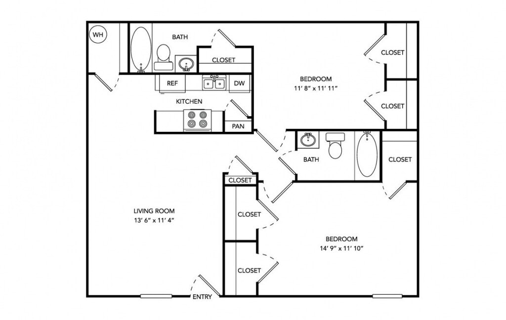 Apartment Model: B1$5502 Bedroom, 2 Bath, 900 sq ftUnavailableFloor plans are artist's rendering. All dimensions are approximate. Actual product and specifications may vary in dimension or detail. Not all features are available in every rental home. Prices and availability are subject to change. Base rent is based on monthly frequency. Additional fees may apply, such as but not limited to package delivery, trash, water, amenities, etc. Deposits vary. Please see a representative for details.