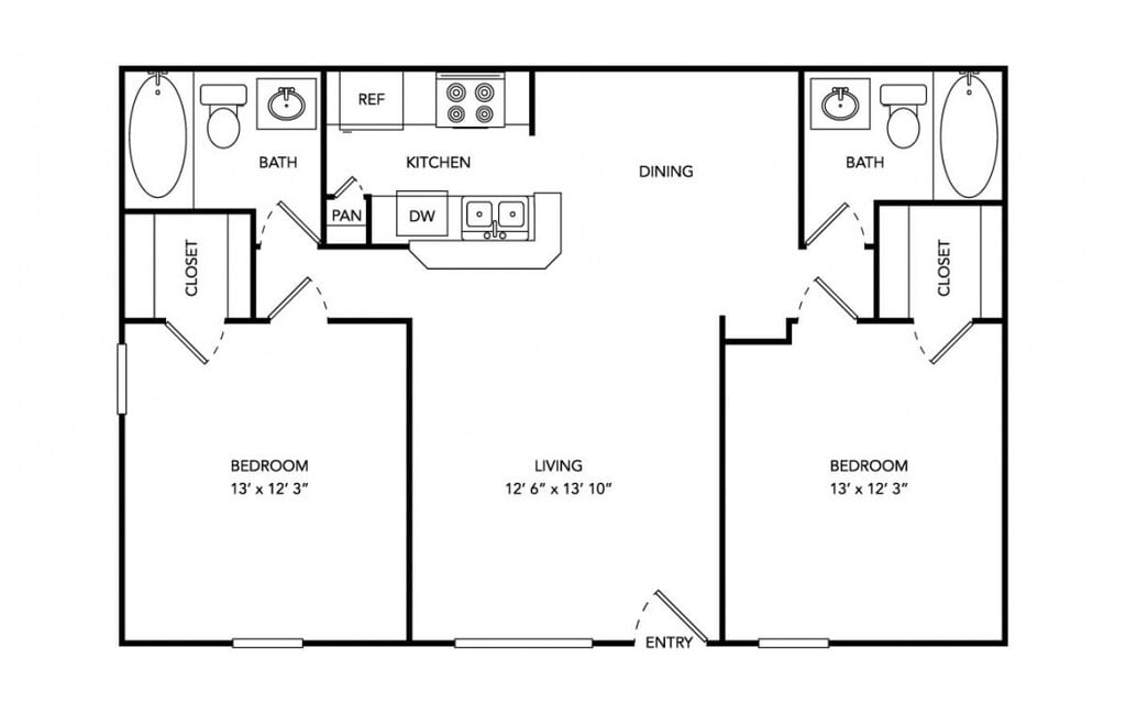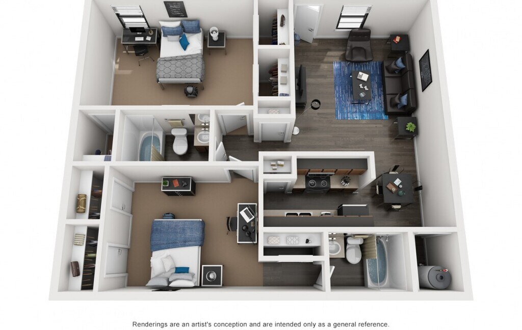2 Beds, 2 Baths, 980 sq ftLargest 2 BedroomThis is the largest 2 Bedroom at this PropertyModel Gallery