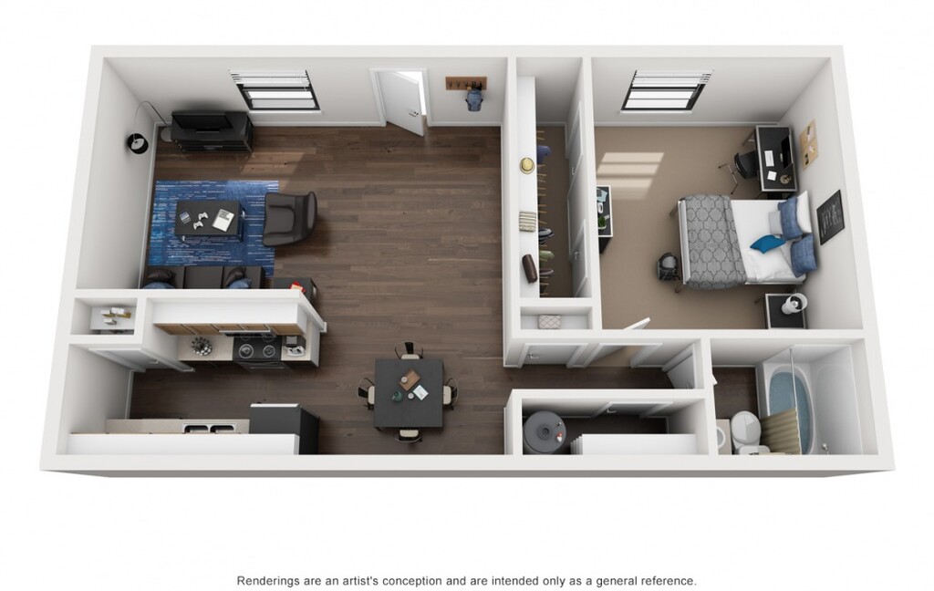 B1 - Floorplan 1 Floor plans are artist's rendering. All dimensions are approximate. Actual product and specifications may vary in dimension or detail. Not all features are available in every rental home. Prices and availability are subject to change. Base rent is based on monthly frequency. Additional fees may apply, such as but not limited to package delivery, trash, water, amenities, etc. Deposits vary. Please see a representative for details.