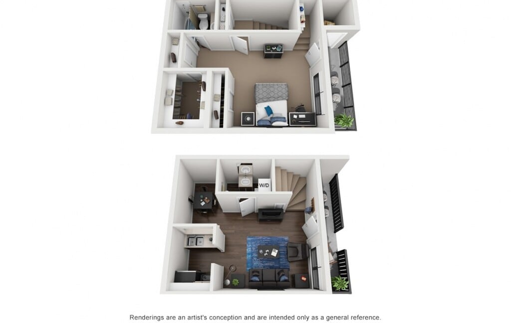 Apartment Model: A1 Townhome$1,0901 Bedroom, 1.5 Bath, 805 sq ftUnavailableFloor plans are artist's rendering. All dimensions are approximate. Actual product and specifications may vary in dimension or detail. Not all features are available in every rental home. Prices and availability are subject to change. Base rent is based on monthly frequency. Additional fees may apply, such as but not limited to package delivery, trash, water, amenities, etc. Deposits vary. Please see a representative for details.