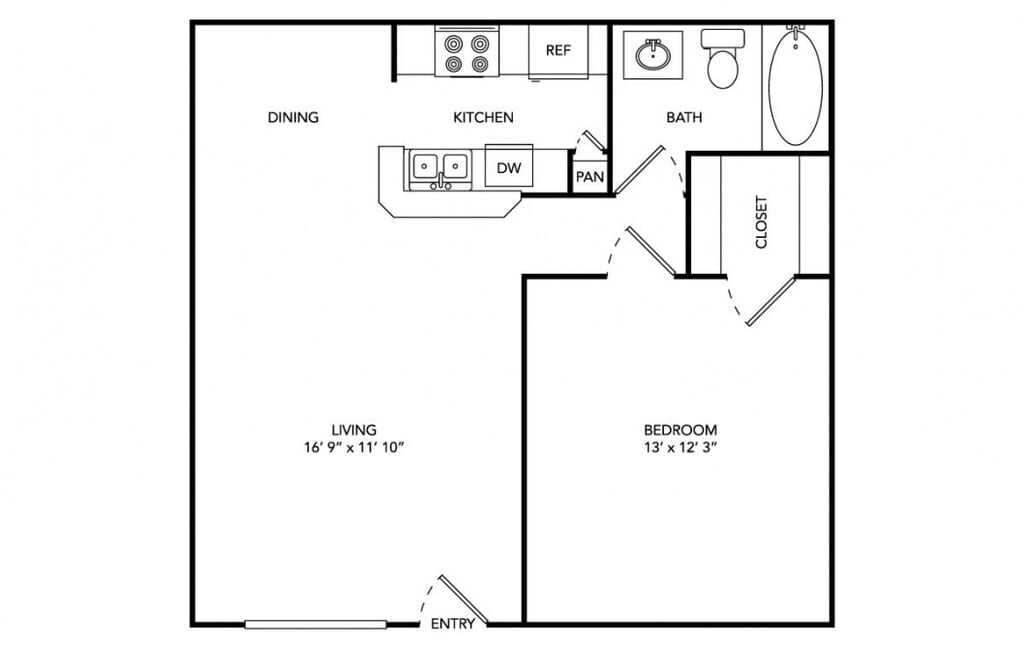 Apartment Model: A3$9501 Bedroom, 1 Bath, 650 sq ftUnavailableFloor plans are artist's rendering. All dimensions are approximate. Actual product and specifications may vary in dimension or detail. Not all features are available in every rental home. Prices and availability are subject to change. Base rent is based on monthly frequency. Additional fees may apply, such as but not limited to package delivery, trash, water, amenities, etc. Deposits vary. Please see a representative for details.
