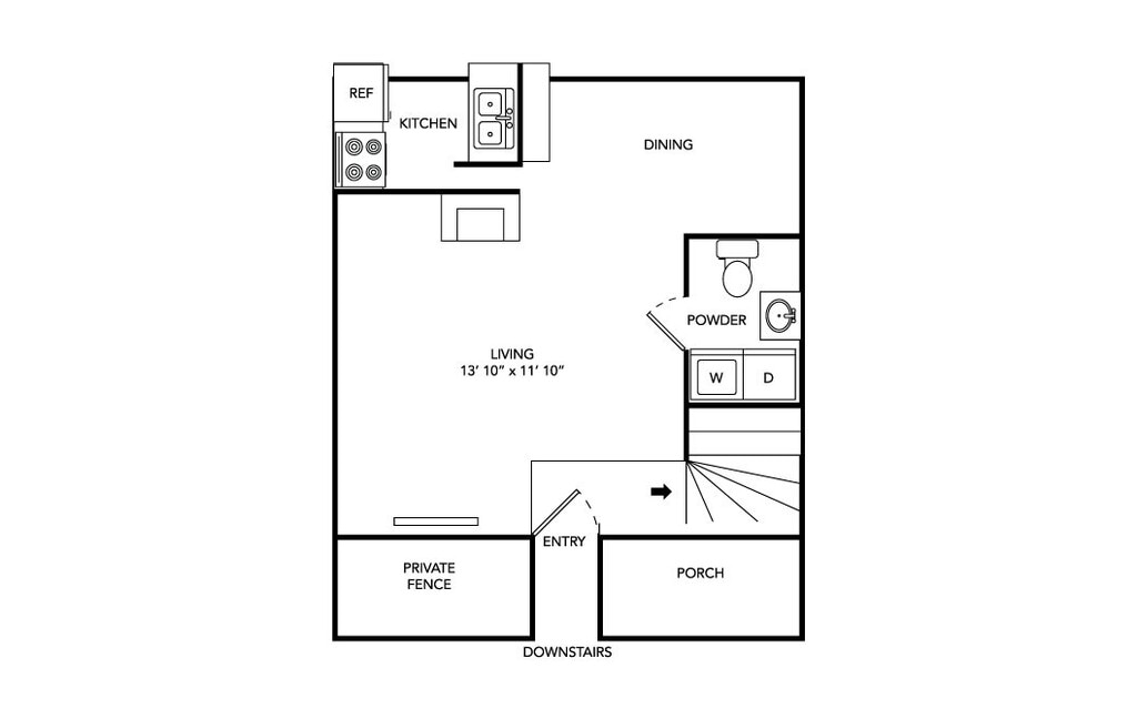 A1 Townhome - Floorplan 2 Floor plans are artist's rendering. All dimensions are approximate. Actual product and specifications may vary in dimension or detail. Not all features are available in every rental home. Prices and availability are subject to change. Base rent is based on monthly frequency. Additional fees may apply, such as but not limited to package delivery, trash, water, amenities, etc. Deposits vary. Please see a representative for details.
