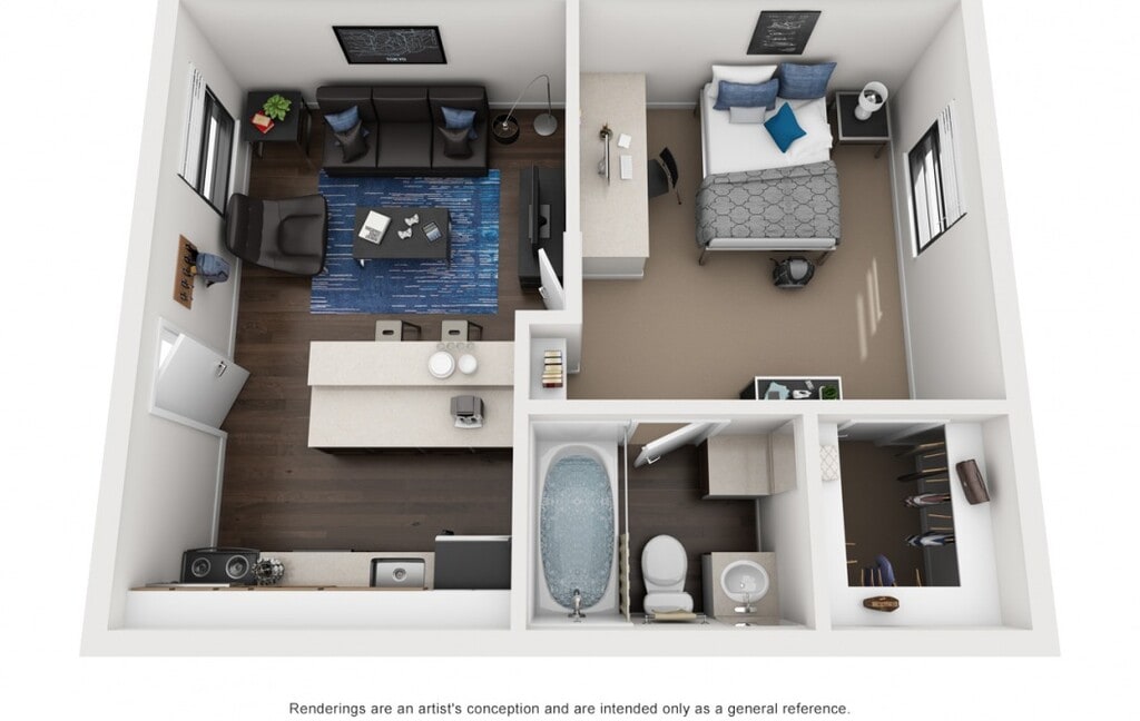 1 Bed, 1 Bath, 500 sq ftModel Gallery