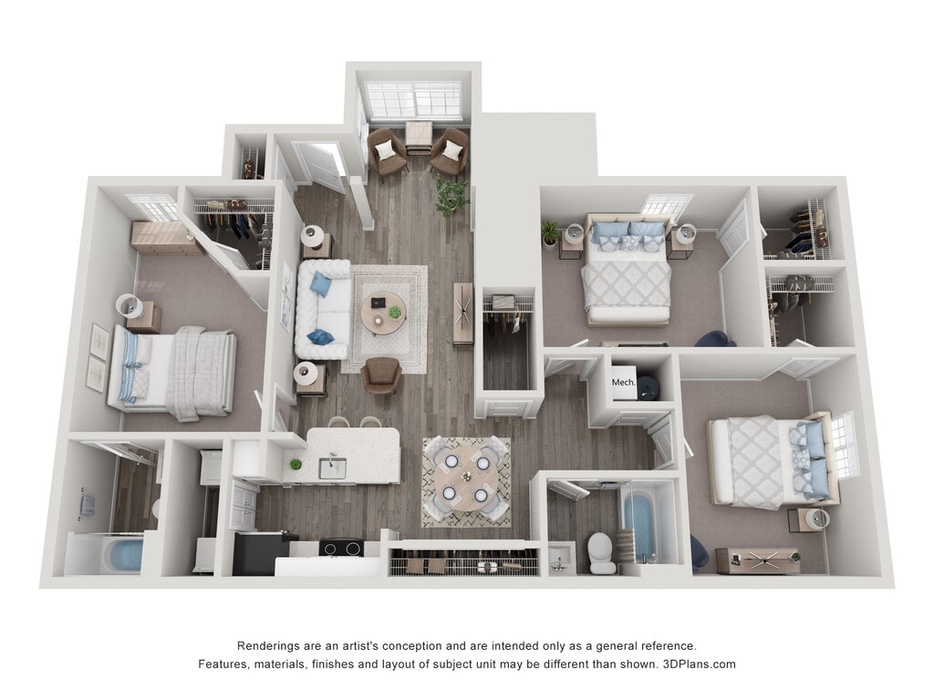 3 Beds, 2 Baths, 1260 sq ftModel Gallery