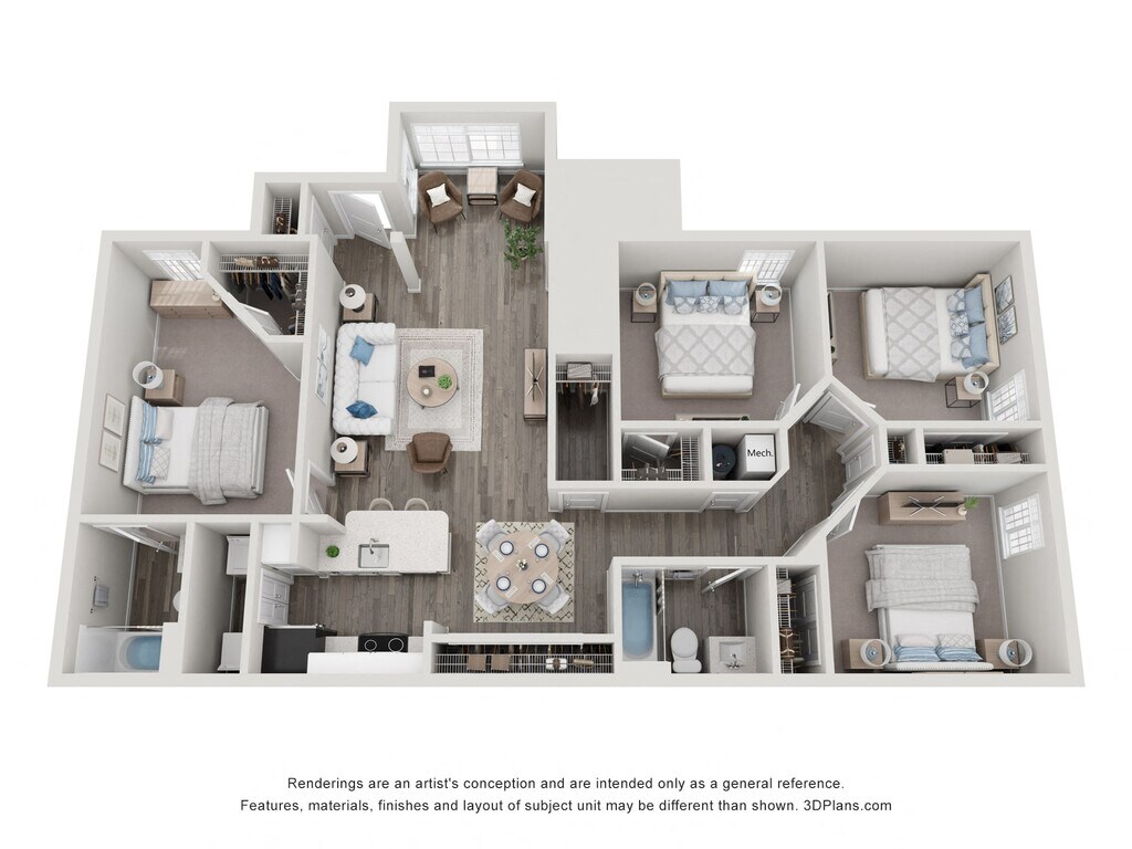 4 Beds, 2 Baths, 1380 sq ftModel Gallery