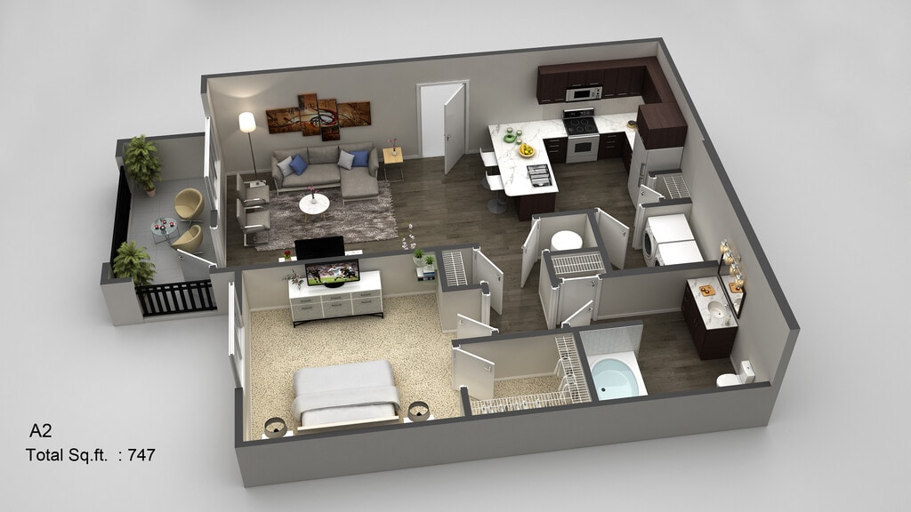 1 Bed, 1 Bath, 747 sq ftModel Gallery