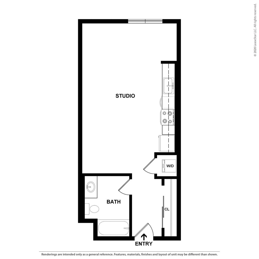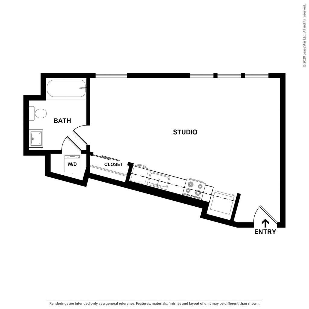 Apartment Model: A5From $2,391Studio, 1 Bath, 590 sq ftAvailable NowFloor plans are artist's rendering. All dimensions are approximate. Actual product and specifications may vary in dimension or detail. Not all features are available in every rental home. Prices and availability are subject to change. Base rent is based on monthly frequency. Additional fees may apply, such as but not limited to package delivery, trash, water, amenities, etc. Deposits vary. Please see a representative for details.
