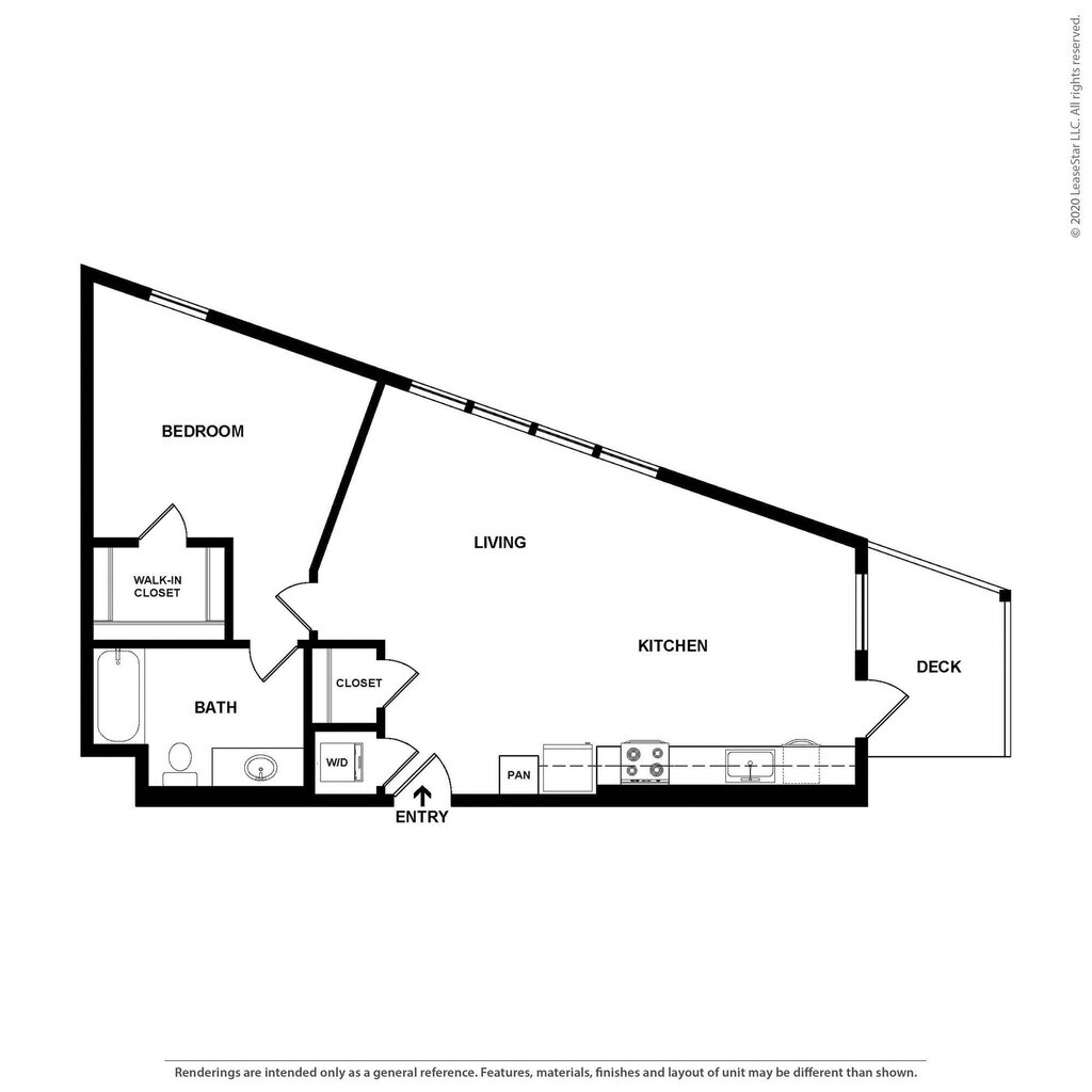 Apartment Model: A3$2,683Studio, 1 Bath, 594 sq ftUnavailableFloor plans are artist's rendering. All dimensions are approximate. Actual product and specifications may vary in dimension or detail. Not all features are available in every rental home. Prices and availability are subject to change. Base rent is based on monthly frequency. Additional fees may apply, such as but not limited to package delivery, trash, water, amenities, etc. Deposits vary. Please see a representative for details.
