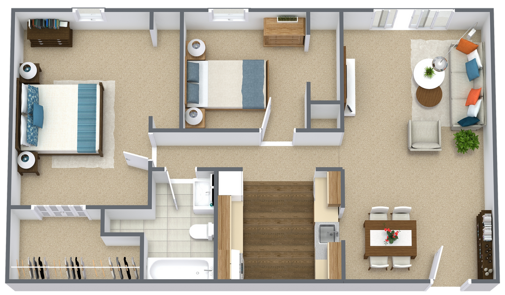 2 Beds, 1 Bath, 850 sq ftAvailable NowCheapest 2 BedroomThis is the cheapest 2 Bedroom at this PropertyModel Gallery