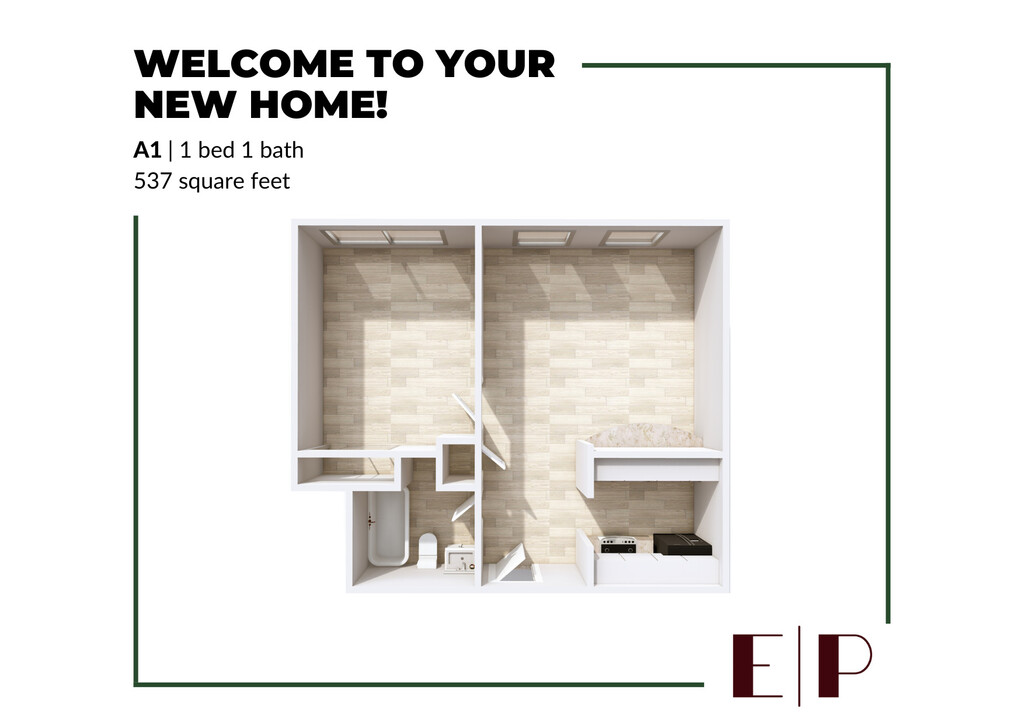 1 Bed, 1 Bath, 537 sq ftAvailable NowModel Gallery