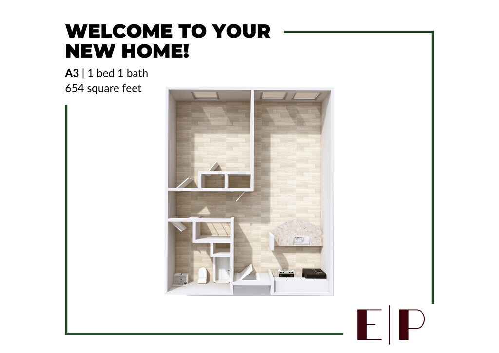 Apartment Model: A31 Bedroom, 1 Bath, 654-667 sq ftAvailable Now![]()